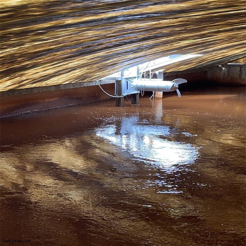 5. 將潛水攪拌機主機使用提升架沿上部導(dǎo)桿(gān)向下降落,使潛水攪拌器軸(zhóu)線位(wèi)置標高和(hé)設計院(yuàn)圖紙設計標高一致 。固定(dìng)提升鋼(gāng)絲繩(shéng)