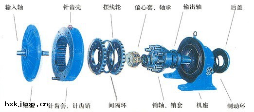 ,將擺線輪(lún)的低速自轉運動(dòng)通過軸銷(xiāo)