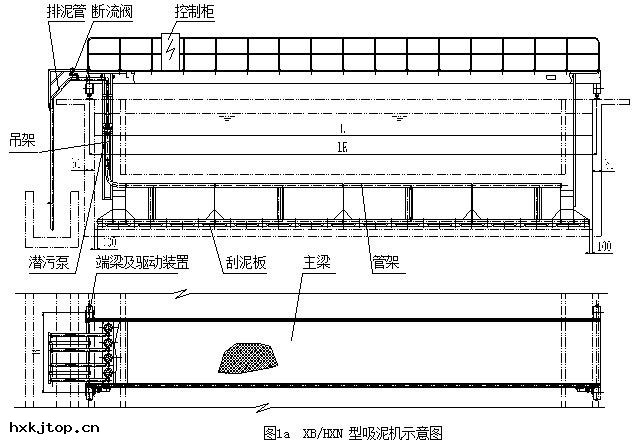 周邊傳動刮泥機由多台潛水無堵塞泵組(zǔ)成吸、輸(shū)泥系統 、斷流(liú)閥 、主梁、端梁及驅動裝置、軌道(dào)和控制(zhì)櫃等組(zǔ)成。主梁由兩端梁上的驅動裝置帶(dài)動,沿鋪設(shè)在池頂上的軌道(dào)行(xíng)駛 ,隨主梁一同運動的潛污泵將沈積在池底的污泥吸取並經輸(shū)泥管排至池外排泥溝 。當具有虹吸條件(jiàn)的沈澱池(沈澱池出(chū)水堰與排泥口(kǒu)位(wèi)差不(bù)小於3米)在潛污泵啓(qǐ)動排泥後切斷電源(yuán),排泥方(fāng)式即(jí)可由泵吸切換為虹吸 ;當要求停止排泥時 ,可打開斷流(liú)閥 ,大量空氣(qì)進入輸(shū)泥管道(dào) ,虹吸破壞 ,排泥即(jí)行(xíng)中斷 。