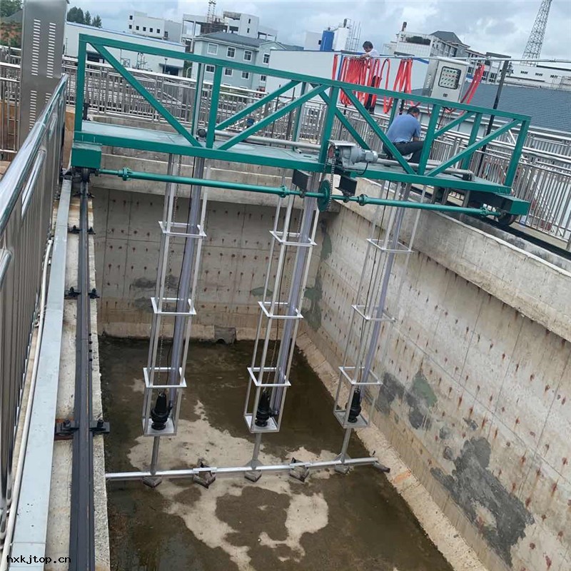 所謂的泵吸式刮泥機由多台(tái)潛水無堵塞(sāi)泵組成的吸、輸(shū)泥系(xì)統、主(zhǔ)梁 、端梁及驅動裝置、控制櫃、軌道等組成。