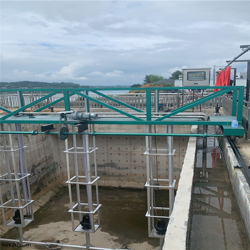 ,隨主(zhǔ)粱一(yī)同運動的潛污(wū)泵將沈積在池底的污(wū)泥吸取並經輸(shū)泥管(guǎn)排至池外(wài)排泥溝。當具有虹吸條(tiáo)件的沈澱池(沈澱池出水堰與排泥口位(wèi)差不小於3m)在潛污(wū)泵啓動排泥後切斷(duàn)電(diàn)源(yuán)