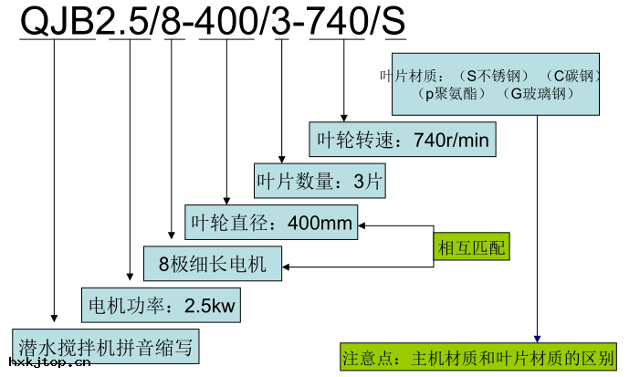 潛水攪拌機產(chǎn)品(pǐn)型號說明: