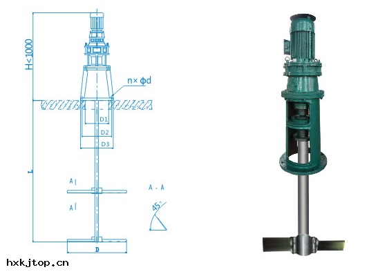 JBJ型(xíng)槳式攪拌機如(rú)圖(tú)所示 ,有攪拌軸 、攪拌槳葉 、機座和(hé)驅動裝置組成‘