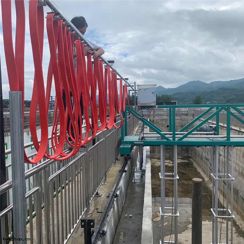 ,隨主(zhǔ)粱一(yī)同運動的潛污(wū)泵將沈積在池底的污(wū)泥吸取並經輸(shū)泥管(guǎn)排至池外(wài)排泥溝。當具有虹吸條(tiáo)件的沈澱池(沈澱池出水堰與排泥口位(wèi)差不小於3m)在潛污(wū)泵啓動排泥後切斷(duàn)電(diàn)源(yuán)