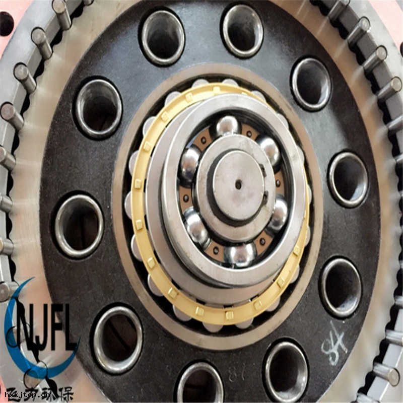 擺線針輪(lún)減速機傳動裝(zhuāng)置可以(yǐ)分為三個部分:輸入部分 、減速部分 、輸出部分 。在輸入軸上裝(zhuāng)有一個錯位180°的(de)雙(shuāng)偏心套(tào),在偏心套(tào)上裝(zhuāng)有兩(liǎng)個轉臂的(de)滾動軸承,形成H機構 、兩(liǎng)個擺線輪(lún)的(de)中(zhōng)心孔即為偏心套(tào)上轉臂軸承的(de)滾道 ,並由擺線輪(lún)與針齒輪(lún)上一組環形排(pái)列的(de)針齒相嚙合,以(yǐ)組成齒差為一齒的(de)內嚙合減速機構 。
