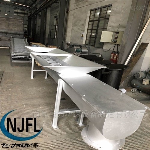 傾斜式無軸螺旋輸(shū)送機(jī)是由無軸螺旋葉片 、槽體(tǐ)、電機(jī) 、減速機(jī)等部(bù)件組成(chéng) 。機(jī)體(tǐ)輸(shū)送槽為(wéi)U型(xíng)設計(jì) ,槽體(tǐ)上有蓋板方便污泥輸(shū)送完畢後對(duì)槽體(tǐ)進行沖洗 。因(yīn)為(wéi)污泥屬於具有一定流動性,所(suǒ)以污泥在(zài)輸(shū)送的時候螺旋輸(shū)送機(jī)不能傾斜角度過大 ,否則(zé)污泥將從螺旋葉片中間的區域流回。