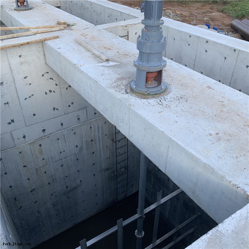 污泥池框式攪拌器錨框式攪拌機(jī)與 攪拌軸的連接方(fāng)式類似於槳式 ,即葉輪(lún)與攪拌軸連接的一端制(zhì)成(chéng)半圓狀的軸環 ,然後兩側葉片的兩個(gè)半圓環用螺栓在攪拌軸上夾緊,同時用穿軸螺栓來固定葉片與攪 拌軸。由於葉輪(lún)的外廓尺寸大 ,為便於裝拆 ,葉片之間多數(shù)是螺栓連接 ,只有小型(xíng)的採(cǎi)用鑄造或焊接。葉輪(lún)以扁鋼 、角鋼制(zhì)造居多,為了提高葉輪(lún)的強(qiáng)度 ,也可採(cǎi)用 加筋的鋼板。